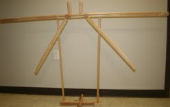 OOPs – back to the knobs. I e-mailed Lacis and they quickly responded, sending me the missing pieces in about a week or so. I then spent several hours on the floor puzzling out the frame – not sure it’s exactly right yet – but here it is! – even if it looks a little like something from the Spanish Inquisition!
