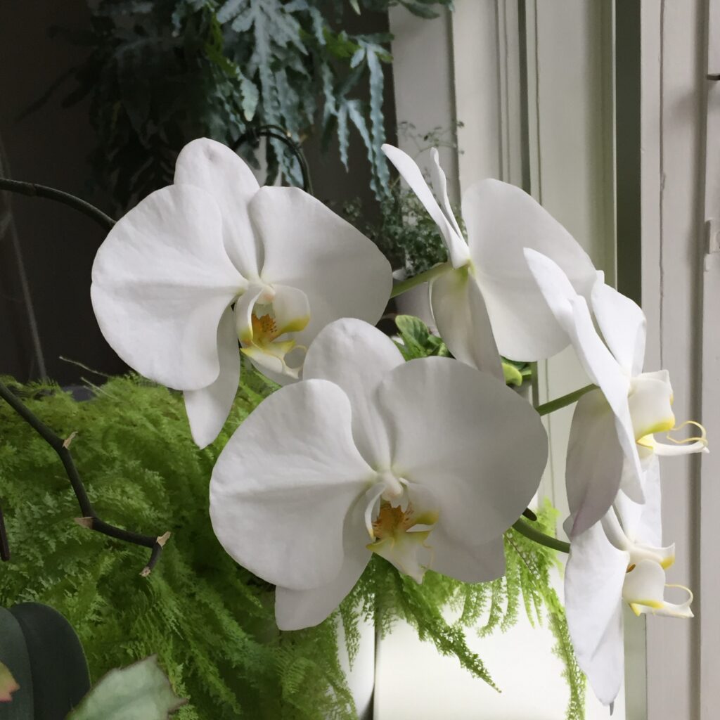 Beside the white orchids