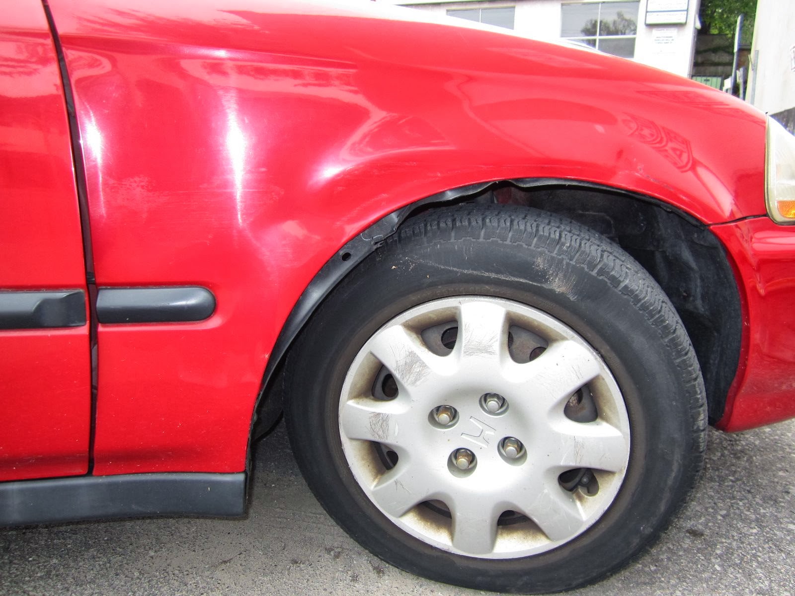 The picture? It’s actually one of the many dings that my old car has suffered in the aforementioned parking spot.