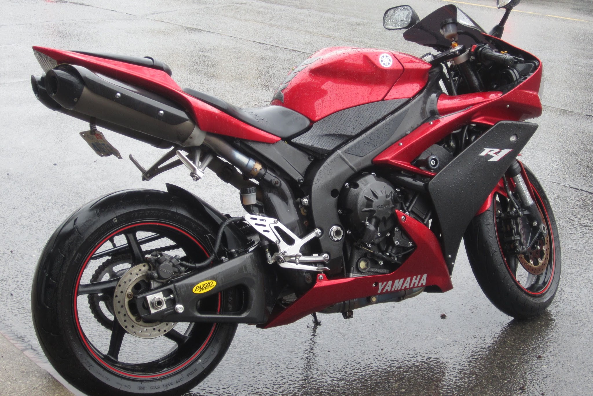 Here’s another, a red scooter. It had just rained so, this vehicle has been “glazed by rain,” it’s red, there is not a chicken in sight, unless you count me because I am not the sort who would ride a motorized cycle, although I admire all who do!!