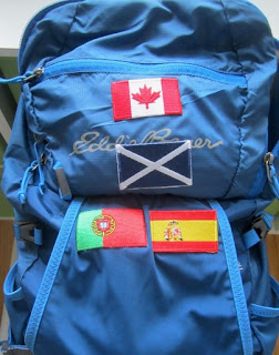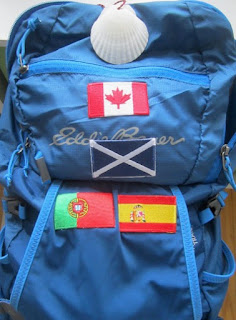 The pictures? The symbols on my backpack. The Canadian flag, of course, the Scottish flag for my late husband and both the Portuguese and Spanish flags because my Camino will pass through these countries. I was trying to get a general Camino badge. The one I like shows a shell with the Pride colours and the words “The Camino Provides.” I may ask for that as a Christmas present.