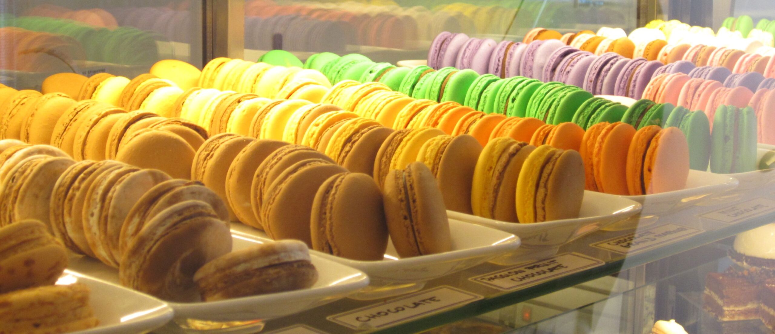 I am blessed (if I don’t mind putting on weight) with having four French bakeries within walking distance of my house. Three of the four are within 100yds of each other – maybe the 100yd diet 🙂 Well, I spread my patronage around to all four. Yesterday I was in Thobor’s on Mt Pleasant and I couldn’t resist the macarons. I didn’t buy any, I just took a picture or two of their display and promised myself, another day. Here they are…