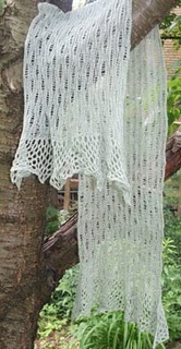 One of the first lace projects I designed after “Snowy Evening” from Robert Frost’s poem, “Stopping By Woods On A Snowy Evening” was Tree Scarf. I wanted to capture the idea of a tree in lace. The main pattern repeat is the bark and I chose the Bird’s Eye pattern in the ruffle at the beginning and end of the scarf, as I said in Wildflowers and Lace: