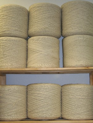 This yarn is a very sturdy yarn – perfect for coats, outerwear and oh, yes bombings. The yarn on the cones is white, but accepts dye wonderfully. You may even have your bomb white to start and then dyed with Cool Aid after installation.