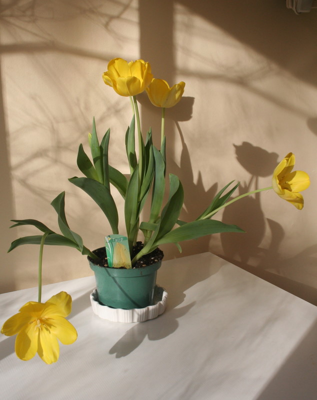 I love tulips. The effectiveness of their simplicity is amazing – they are linear yet graceful with dazzling colours and subtle fragrance. Although they originated in Turkey, tulips really don’t like warm weather – one reason they become languid indoors.