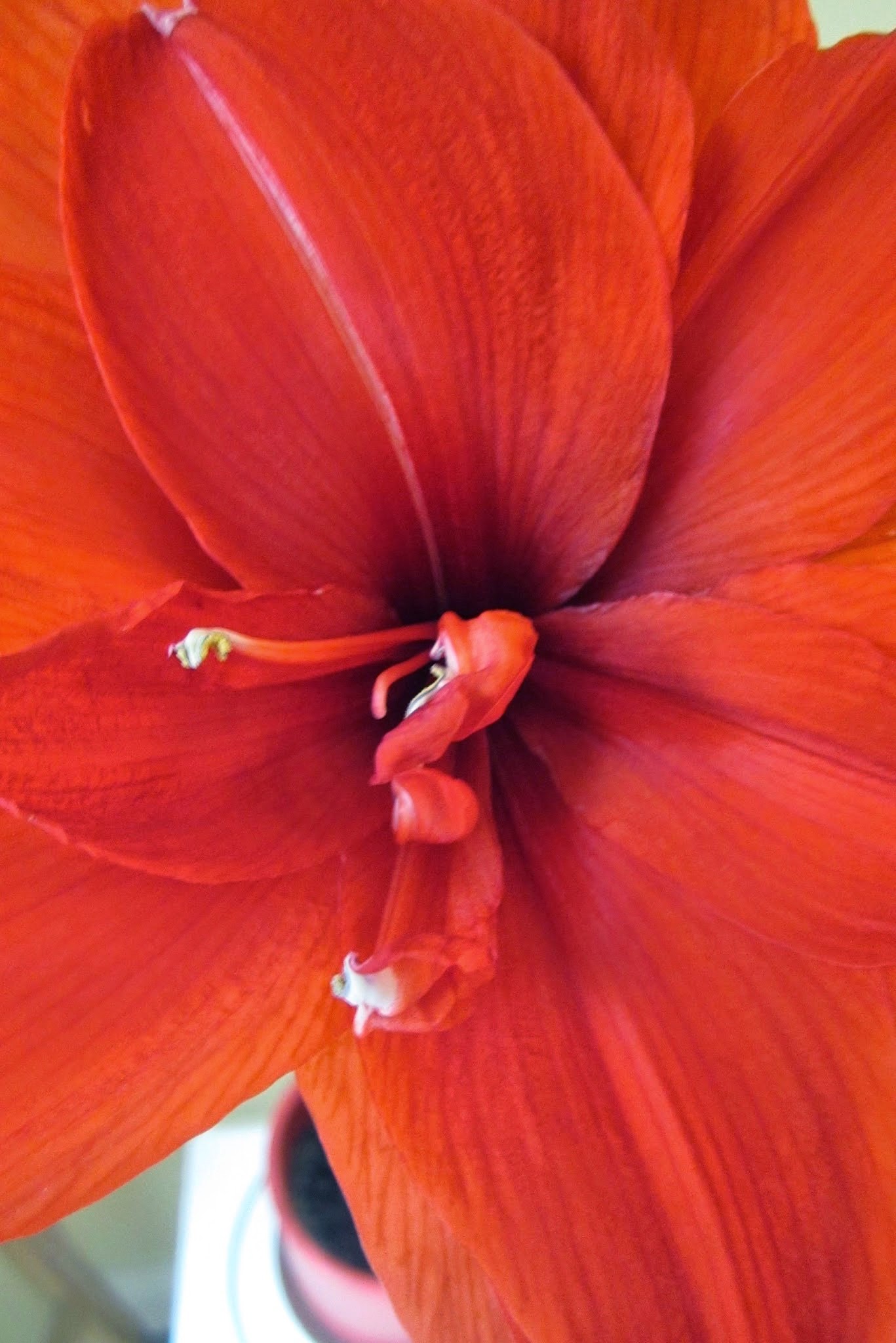 Finally, there is the second blooming of a red Amaryllis. This is a double flower, which bloomed once with two or three flowers on the stalk. Then another stalk grew up and it is flowering right now with another few blooms. Great entertainment from January to April for $15.00.