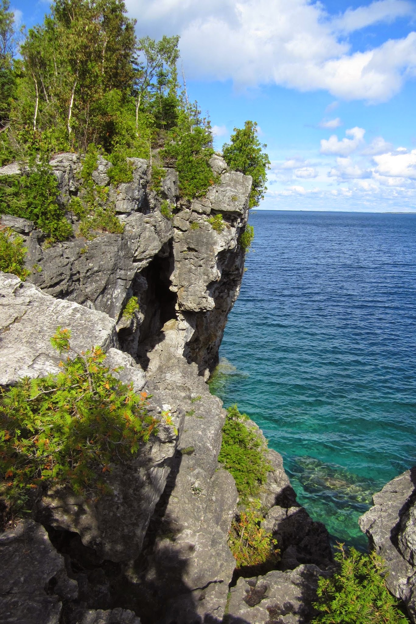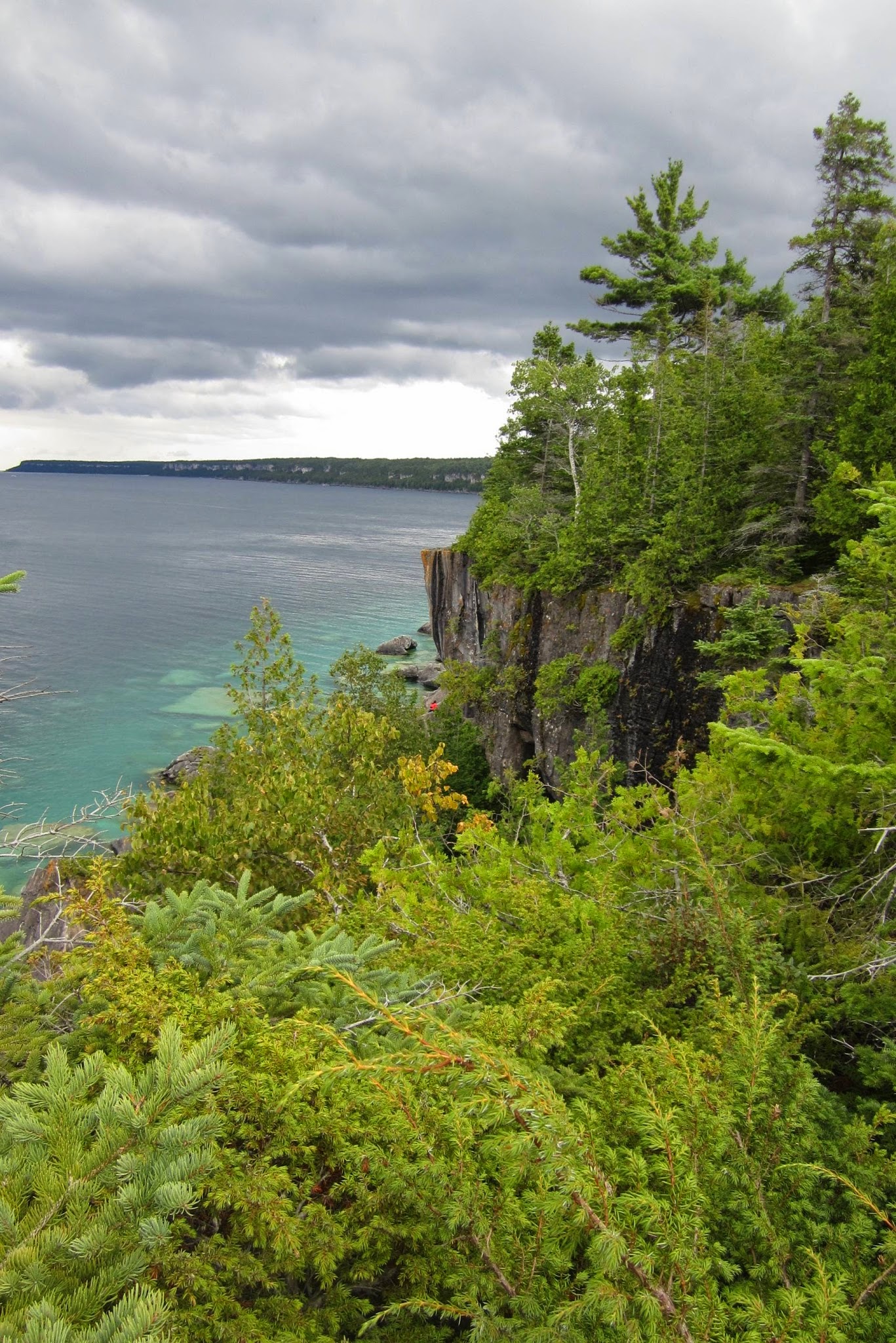 This oh no! moment came after lunch. There are these times in life, when we seem to move from the tediously mundane to the very cliff edge of existence in just a few minutes (OK, maybe half an hour). Let’s begin with the mundane, lunch. It was difficult to find a decent sandwich shop in Tobermory for lunch. Everyone seems to do either wraps or pizza. Unfortunately, unless you have kitchen facilities where you are staying, it’s hard to make a simple lunch for the trail. No one seems to do boxed lunches either, well, it isn’t wine country!! Anyway, I did manage to find a coffee shop that had bagels and my husband settled for a wrap.