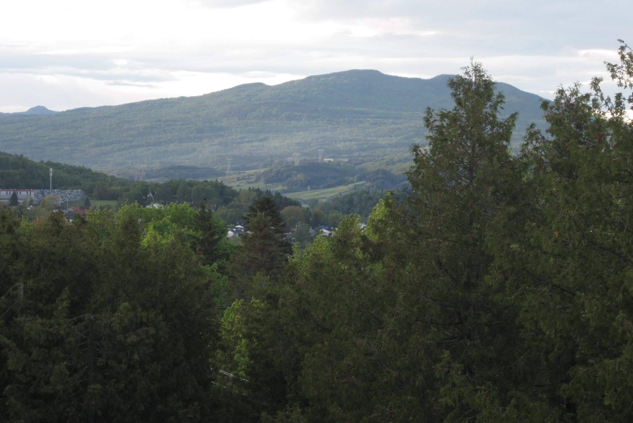 Since the back up of vehicles on the other side of the river was even worse, we decided to return to La Malbaie via a bridge at the top of the fjord in Chicoutimi, albeit a two hour drive away. We were rewarded, though, with an awesome trip along the East shore of the Saguenay – again winding country roads, sometimes with a small river on either side, lots of trees, old mountains, gorgeous scenery and….wait for it….rain. We knew there were hikes along the fjord, but decided not to venture out of the car. Did I mention that the rain also came with an icy wind?