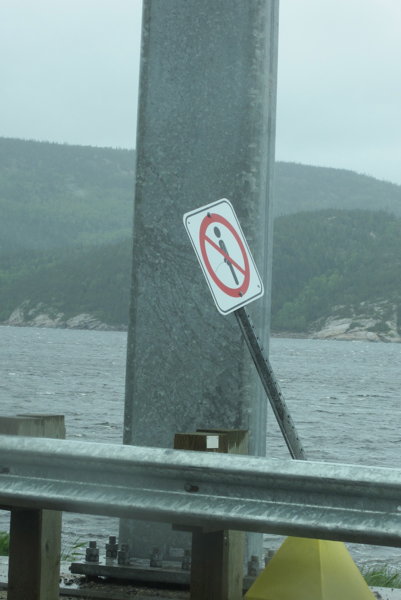 For those of you who collect unusual road signs, this is a classic. Anyway, someone should have held the sign up to the sky to tell it to stop piddling on us.