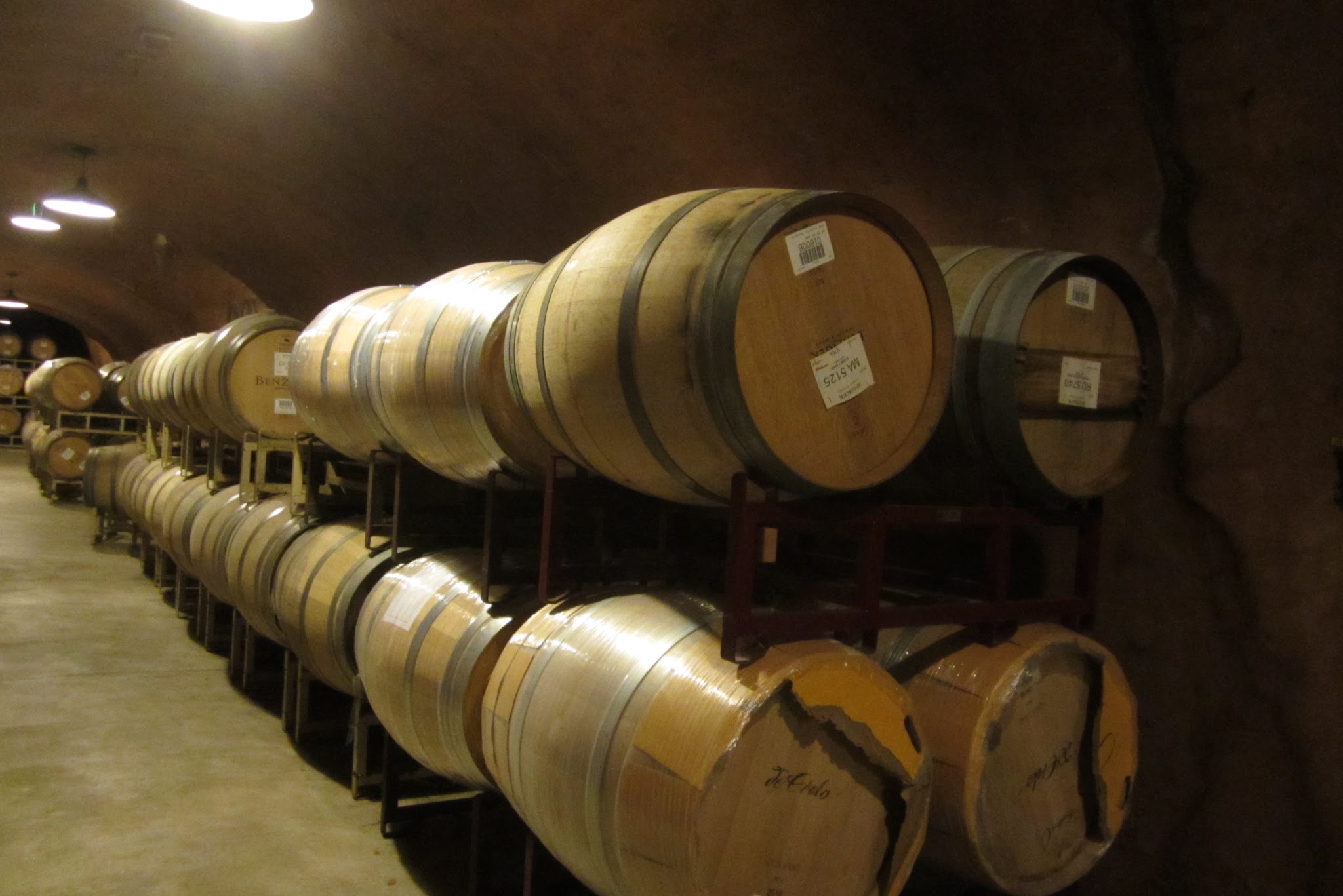 The winery, itself had made some changes, but not enough to make it unrecognizable and the picnic area was still there. We bought a bottle of RoseĀ“, after tasting a few and ate our delicious sandwiches, on a sun-dappled patio – perfection. With nothing left to eat or drink, we sussed out another winery, a difficult task, as there are over 100 in the area, and arrived at the Berziger Family Winery, just as a tour was starting.