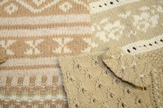 The pretty one on top hasn’t been developed yet. Maybe its time has come. The fair isle in back is a crew neck pullover. The one on the left became Gingerbread Vest. I often thought that some simple baby outfits would work in organic cotton.