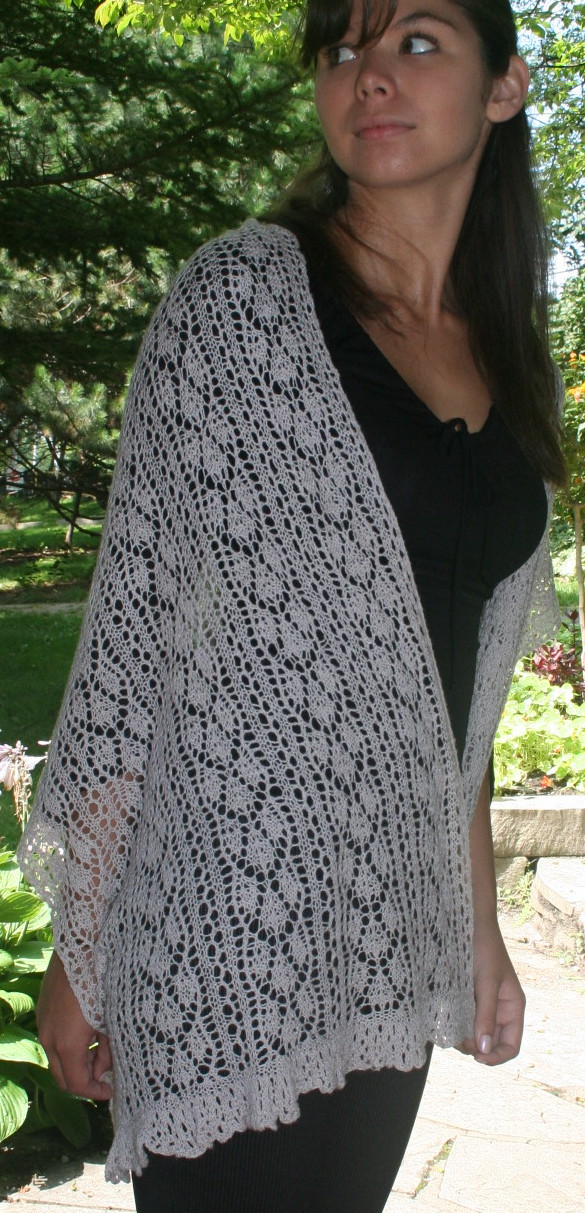 At Infiknit, the colour Mushroom in our Fantastic Knitting Zephyr lace weight yarn is a really popular colour. It is one of those shades that screams – well maybe it’s whispers – understated elegance. It’s a very tasteful shade – no pun intended. I chose it for Woodland Solace. I think that you could also use this pattern as a tablecloth – just make it wider and leave off the ruffle. (that’s ruffle not truffle)