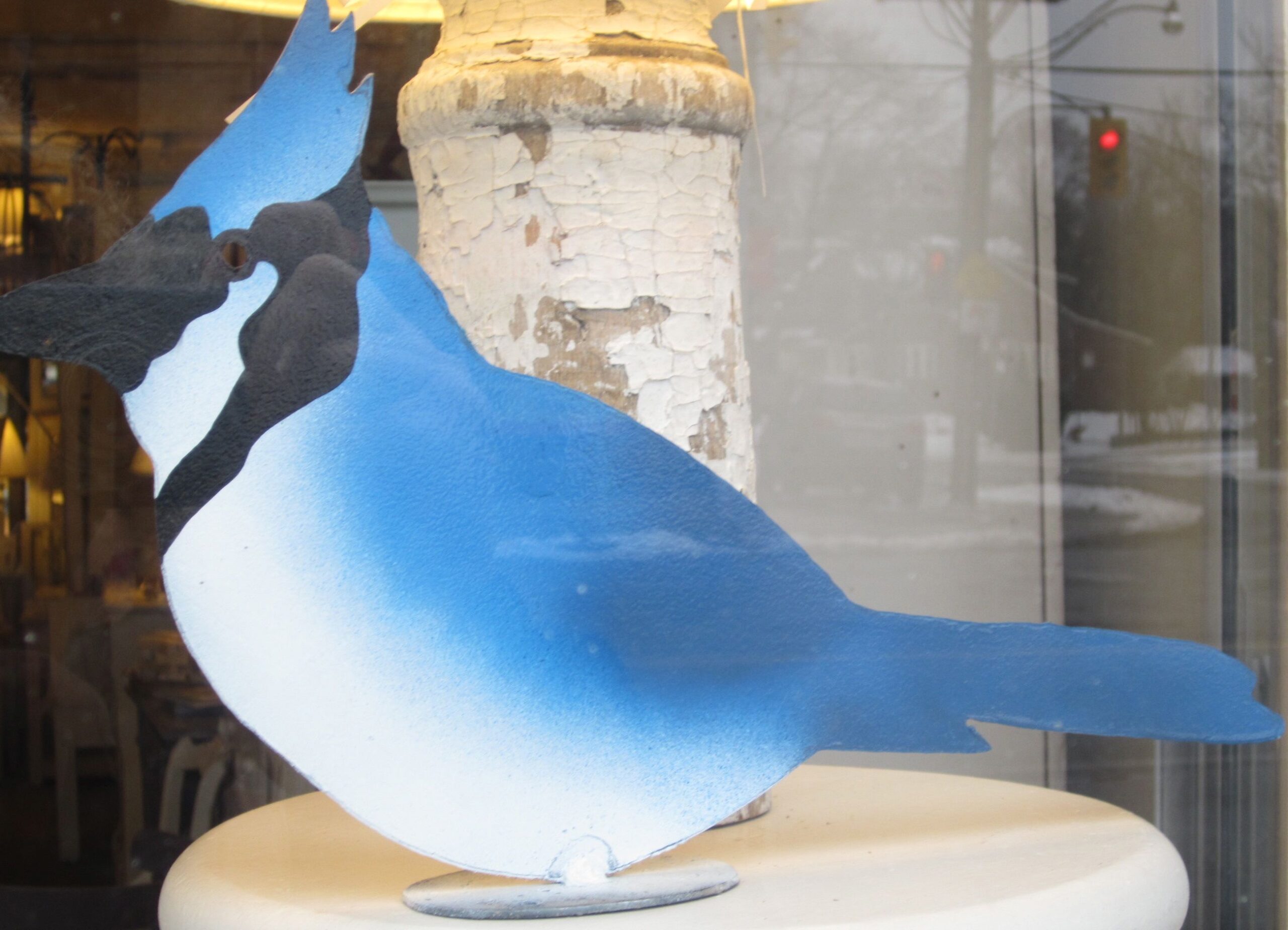 | Blue Jay created from scrap metal |