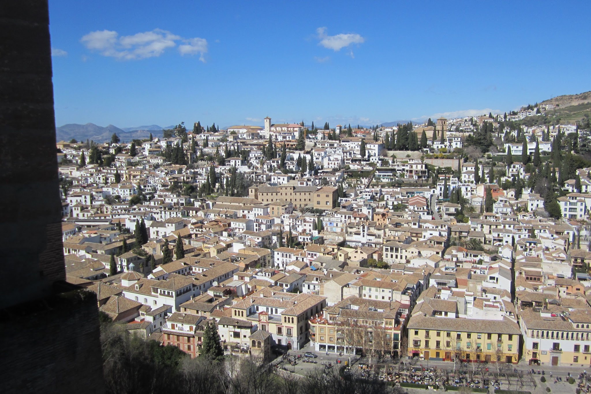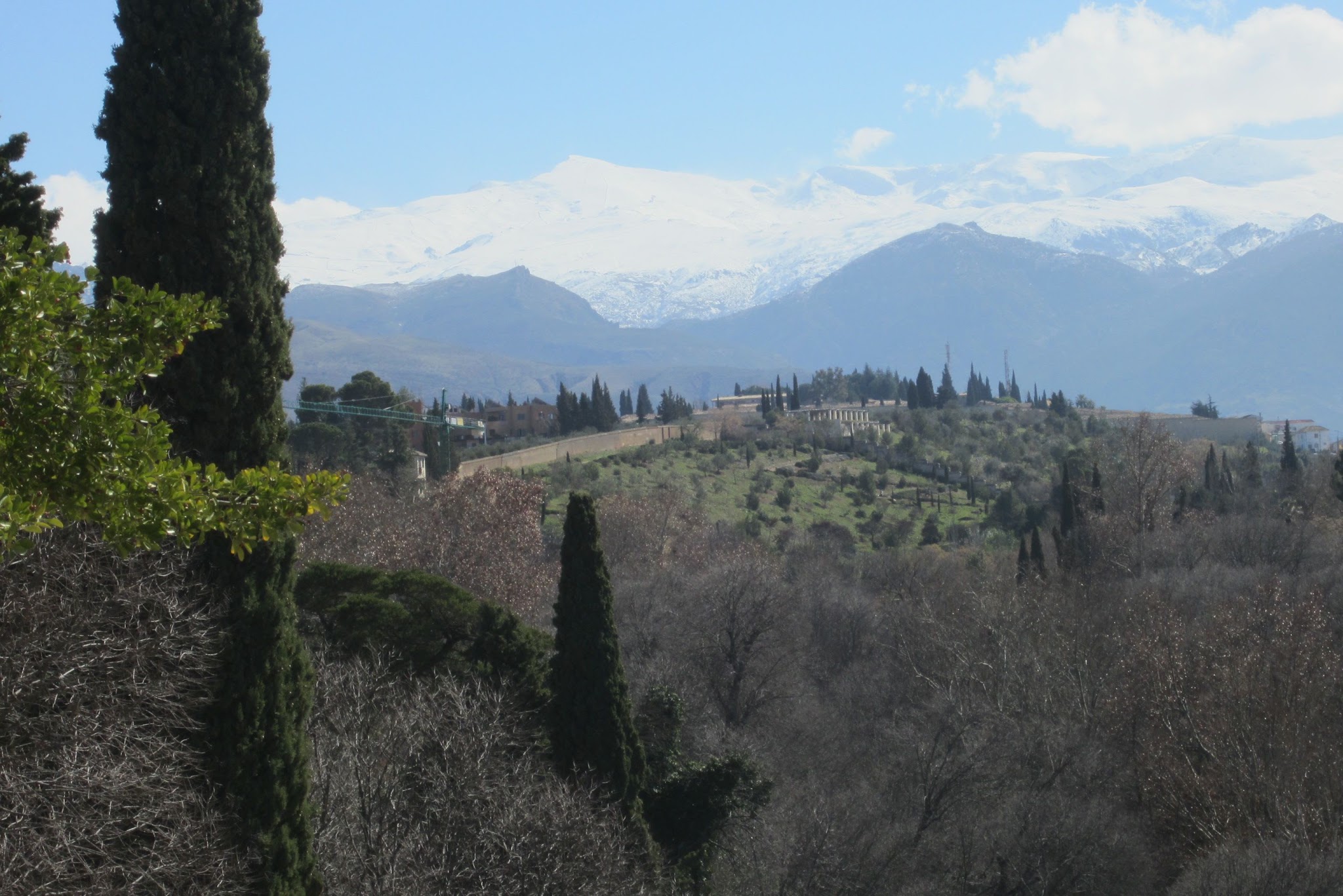 Granada itself was busy. There were lots of buildings, shops, people and traffic. Fortunately, we were surrounded by mountains, the snow covered mountains of the Sierra Nevada. They were our mental escape, from the urban chaos. We managed, though, in spite of the madness, to potter around the city for the rest of the day and since the concierge at our hotel, suggested we go to the top of the hill, opposite the Alhambra for a view of both the sunset and the palace, which was lit up at night, we decided to have dinner up there that evening. He did not mention, however, the 50mph wind and the temperatures bordering 0ºC that we would find at the summit of the Albayzin. Perhaps he hadn’t actually been there himself in February. This was not a serendipitous moment. We had hoped to find a restaurant here, but it was too cold to even look at the menus.