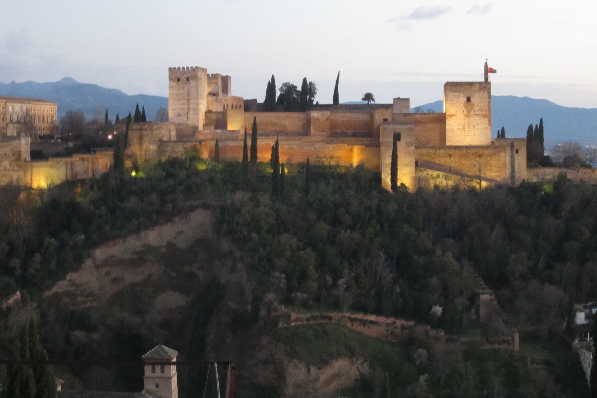 That being said we noticed a large group of people outside of one of the restaurants. “It must be a good one,” I said. “Let’s see if we can get in.” We muscled our way through the group, only to have them disappear almost immediately into an oversized cab. They were actually a large extended family sheltering in the doorway of the restaurant, until their taxi arrived. By then, there was no time to read a menu – an anxious waiter was at the door. “We’d have to take this one on faith,” I thought, as he took our reservation, ushered us upstairs and seated us at a table, by the window, with a full view of the Alhambra!! Forget dinner, the meal was before us!!