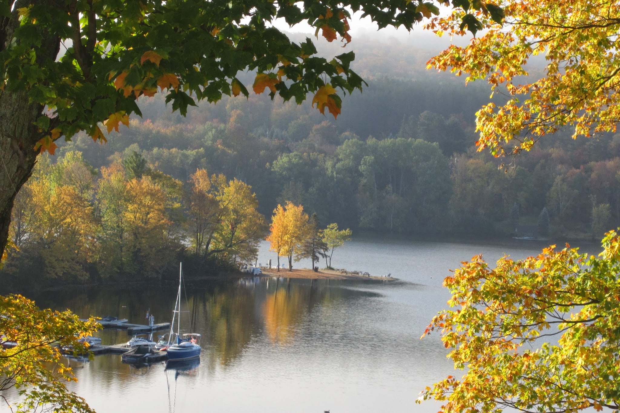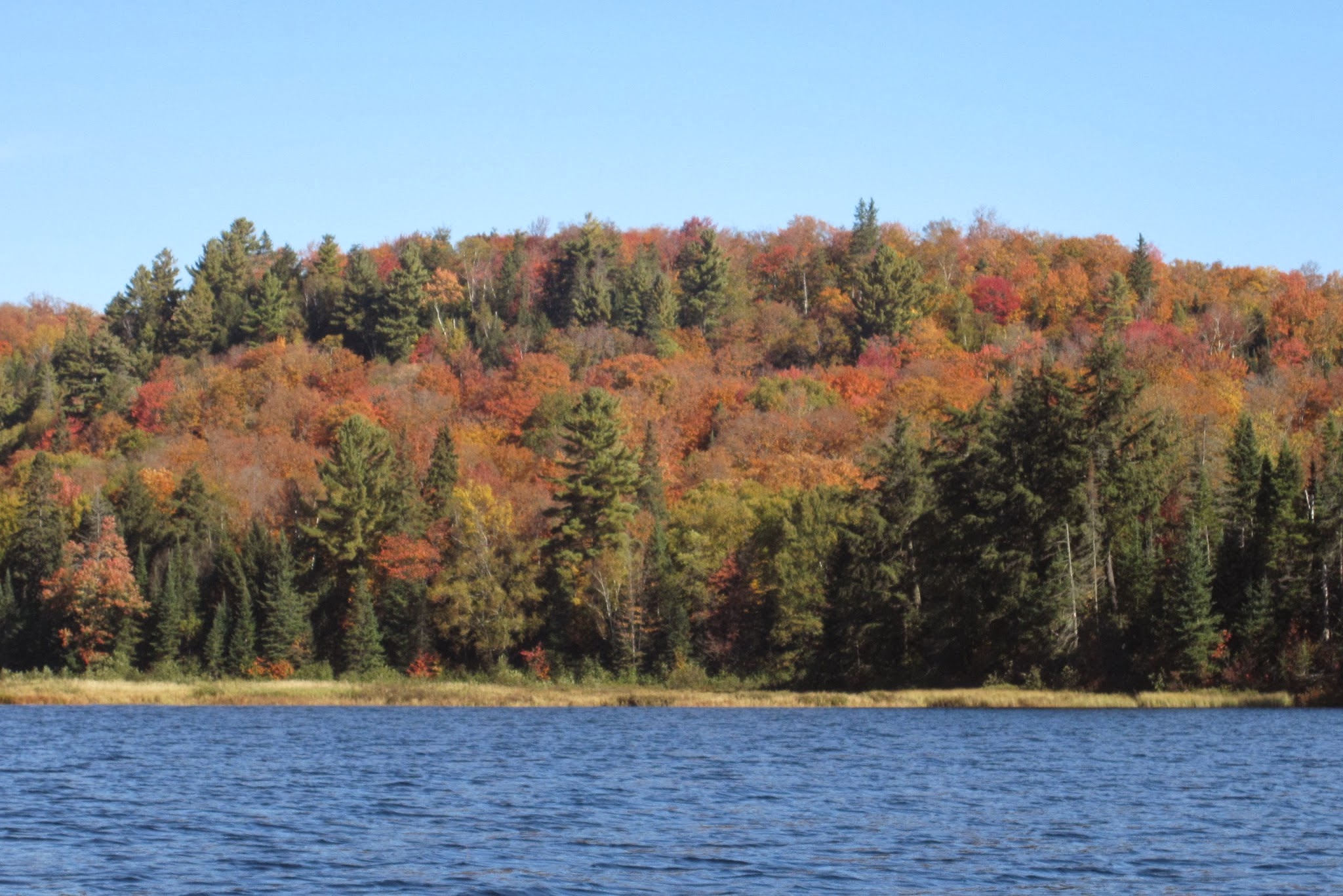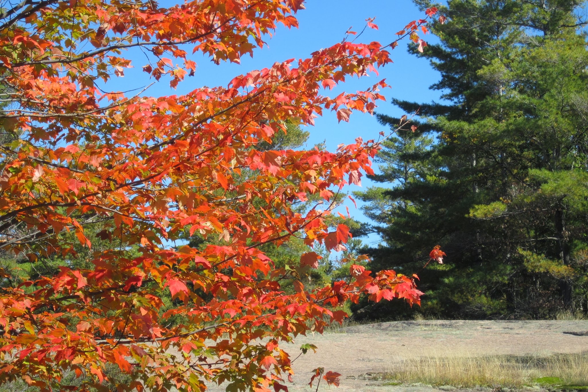 We cashed ours in, in January, for a weekend at a resort in Muskoka, Deerhurst. It’s about two hours north of Toronto. Time passed and we were never either in the mood or had the time, to actually book this “free” weekend. Enter the bathroom gremlin who decided that we needed both a holiday and a new bathroom. Hence, forced by circumstances, we are up here enjoying the magnificent Fall colours of an area very close to Algonguin Park. Here are a few pictures