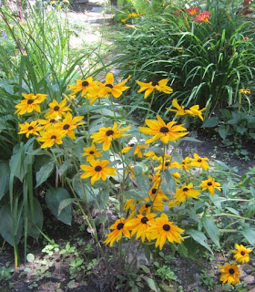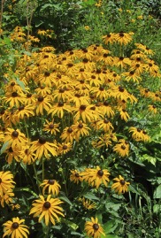 July has been wet. I don’t mind. It means I don’t have to water the garden and I can save some money and some energy. With all the rain, of course, the garden is lush. It’s hard to imagine the barrenness of Winter with the sunny Rudbeckia in bloom.
