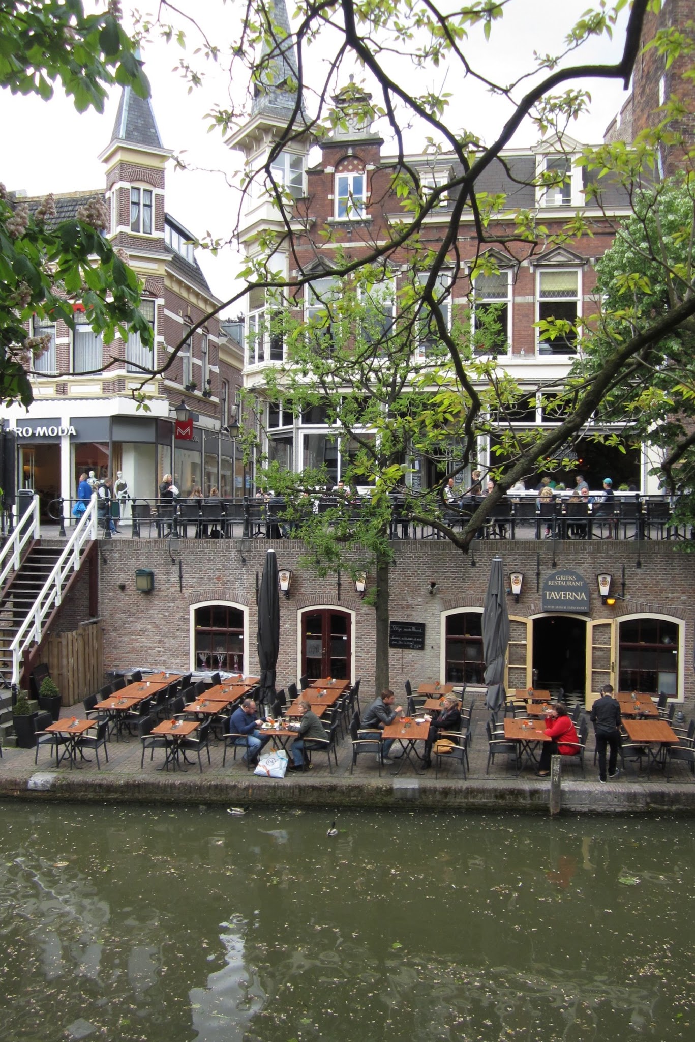 We were planning on visiting Utrecht, anyway. It’s one of those “must see” places and we were not disappointed. It’s a lovely old university town with ancient buildings, tierred canals, winding streets, delightful shops and charming cafes. We arrived just before lunch. I do love planning itineraries around meals. Even if we had arrived earlier – Utrecht is less than an hour from Amsterdam by train – there is always the tradition of having a coffee anywhere, anytime, isn’t there!