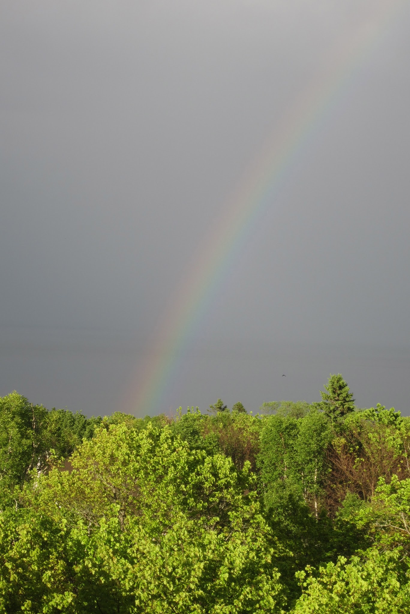 We were staying at an apartment in a small resort not far from Manoir Richelieu, the last, I believe, of the famous railway hotels which were built to resemble French chateaux. Our unit had a gorgeous view of the St. Lawrence, the mountains, the sky, the clouds, and wait…where’s the rain? Actually the sun was shining for a few hours at the end of the day and apart from a brief shower that left us with a rainbow, we had a gorgeous evening.